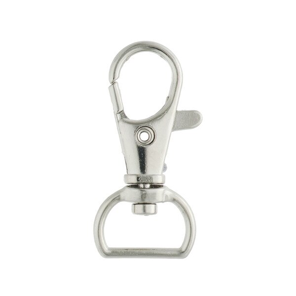 Bandola de presión que se puede usar junto con cordones o cintas en gafetes, para asegurar correas, llaveros, bolsos o mochilas.