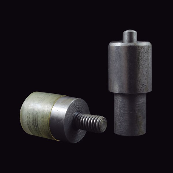En la máquina remachadora manual (MQ3) se colocan las dos partes del dado, inferior y superior respectivamente. Posteriormente se hace presión con el mango de la máquina.